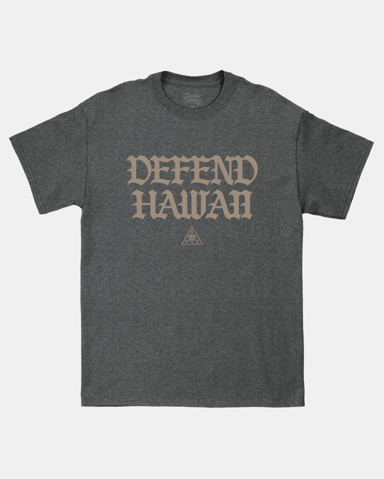Defend Hawai'i - An homage to the historical Night March stories. Featuring a logo center hit and fire back hit. Pick your favorite color way. This one comes in gray and red ink on a black or charcoal heather casual fit tee.