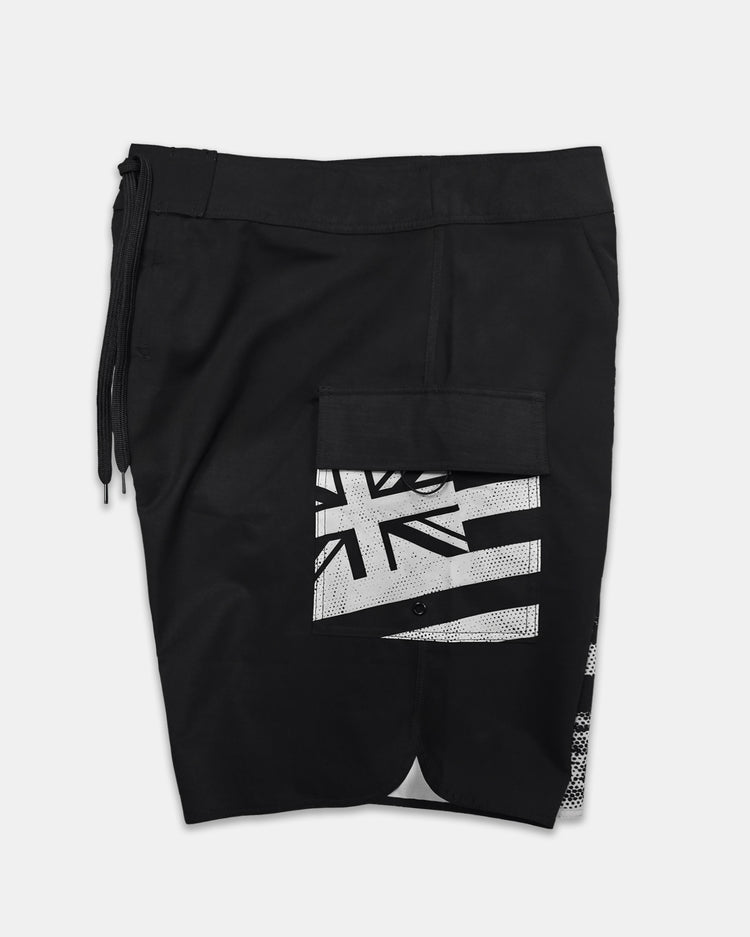 Defend Hawai'i - You asked, we listened. The Ikaika Wa'a boardshort is back for a second time. A historical gray scale frame on the right leg pairs well with the black leg and gray hae.