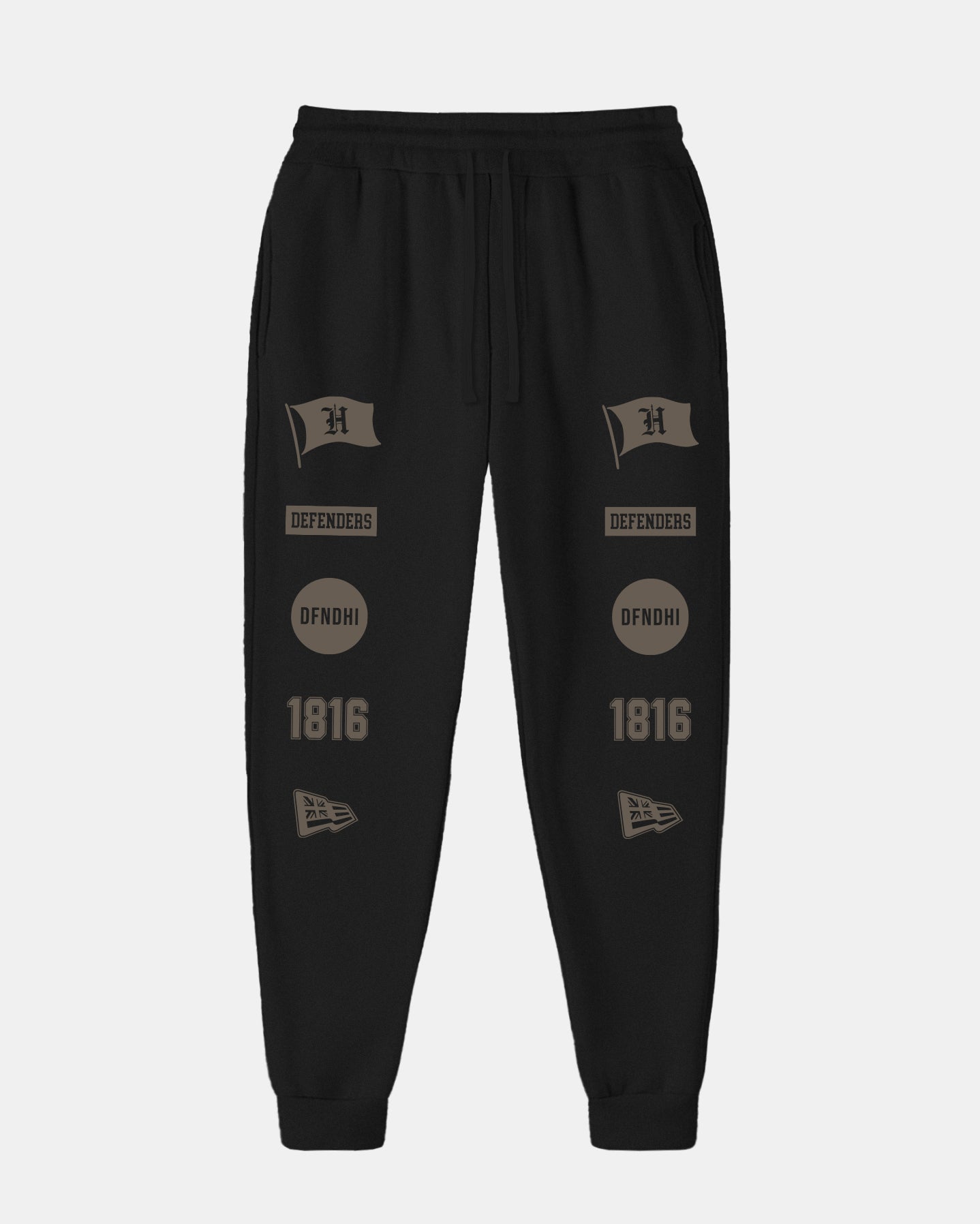 Defend Hawai'i - Introducing the H Spear Rally logo. Featuring a double leg hit. This one comes in tan ink on black midweight fleece jogger. Your everyday tee to DEFEND with.