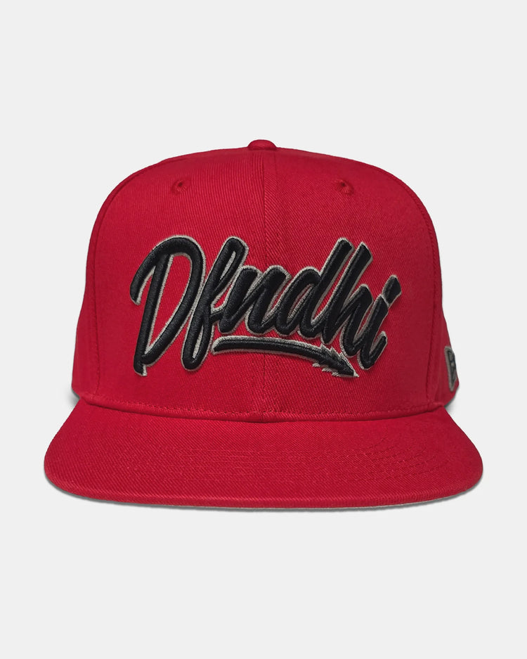 Defend Hawai'i - Our newest hat design, for all da defenders. A Bold Script Defend Hawaii logo embroidered in black on a red crown hat. A hae Hawai'i (Hawaiian flag) patch embroidered on it's side. This one is a cotton camo snapback hat, with a red crown, red eyelets, gray underbrim, and button with a snap closure.
