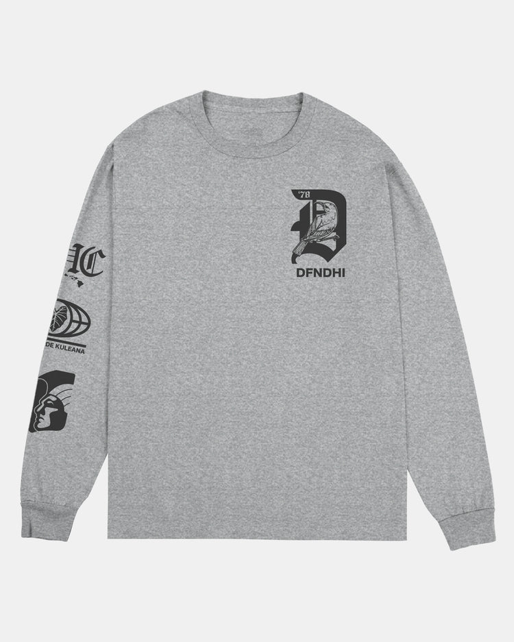 Defend Hawai'i - For you, with you, by you. This is the Brand of The Bold. Featuring a clean pocket hit and a sleeve hit. Pick your favorite color way. This comes in black ink on a white or athletic heather casual-fit long sleeve tee.