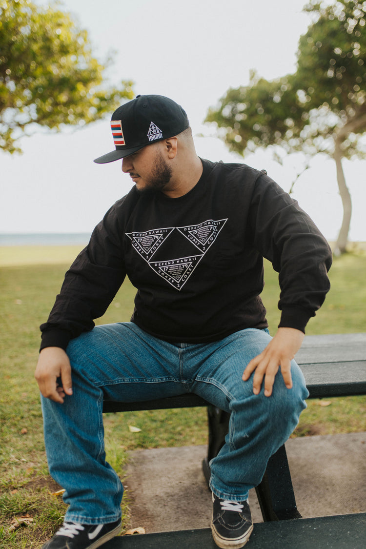 Defend Hawai'i - Throw it on and go, we're Coastin'. We are dedicated to preserving the Hawaiian culture by any means necessary. Featuring a casual chest hit. Pick your favorite colorway, this one comes in white on black casual fit long sleeve. Your everyday tee to DEFEND with.