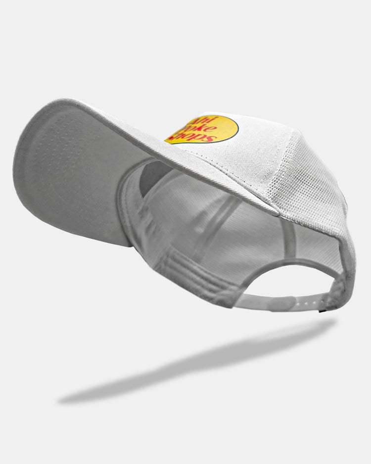 Defend Hawai'i creates THE must have parody design. This Ahi Poke Shops a-frame five-panel snapback. Clearly a local twist of another trendy hat, if you know you know. This one is a full cotton casual fit white meshback trucker hat with a snap closure.