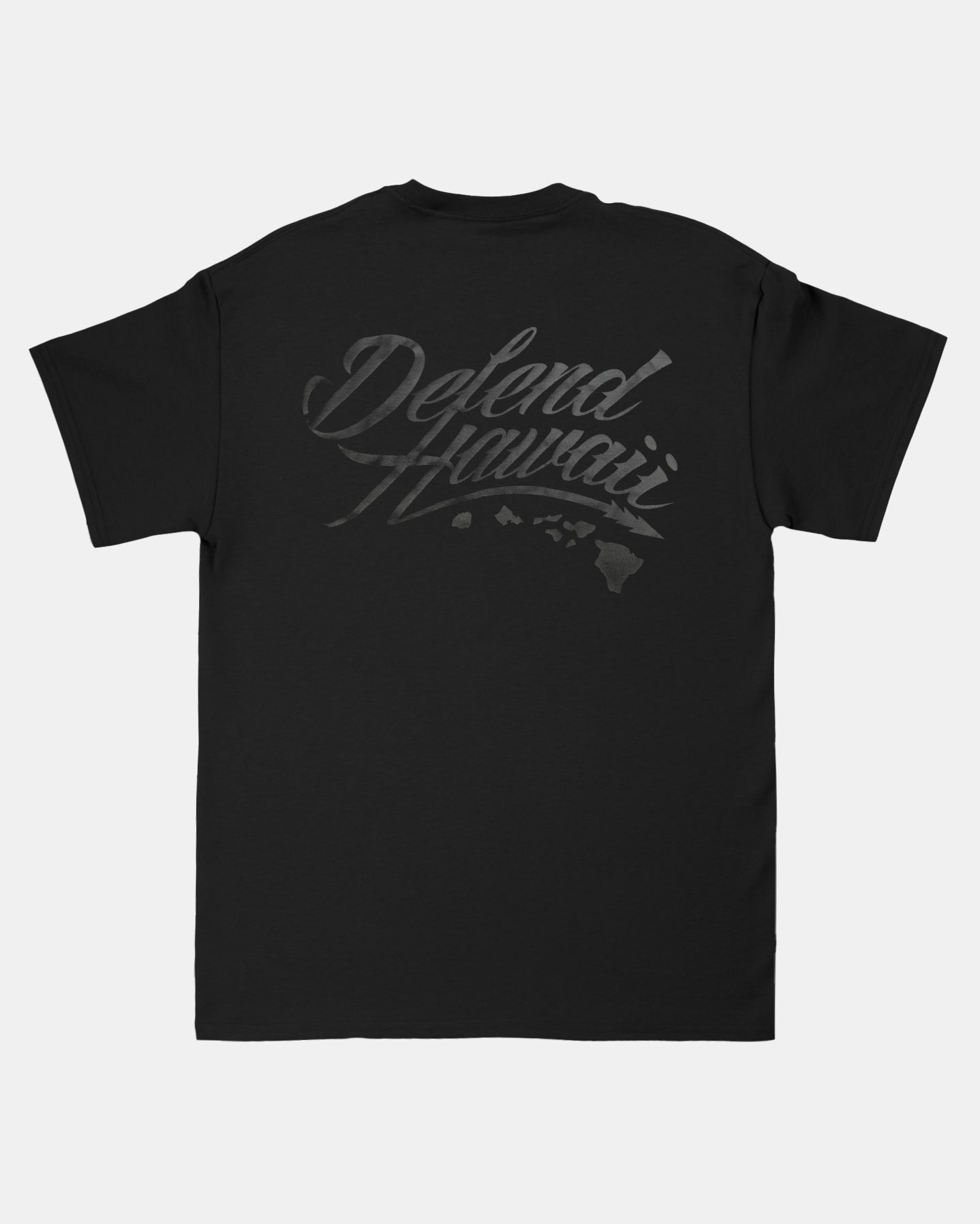 Defend Hawai'i - The iconic, never duplicated, stapled Wildstyle 'Elua logo. Featuring a subtle pocket hit paired with a mayjah back hit, this time puffed to perfection. This one comes in black puff ink on a black casual fit t-shirt. Your everyday tee to DEFEND with.