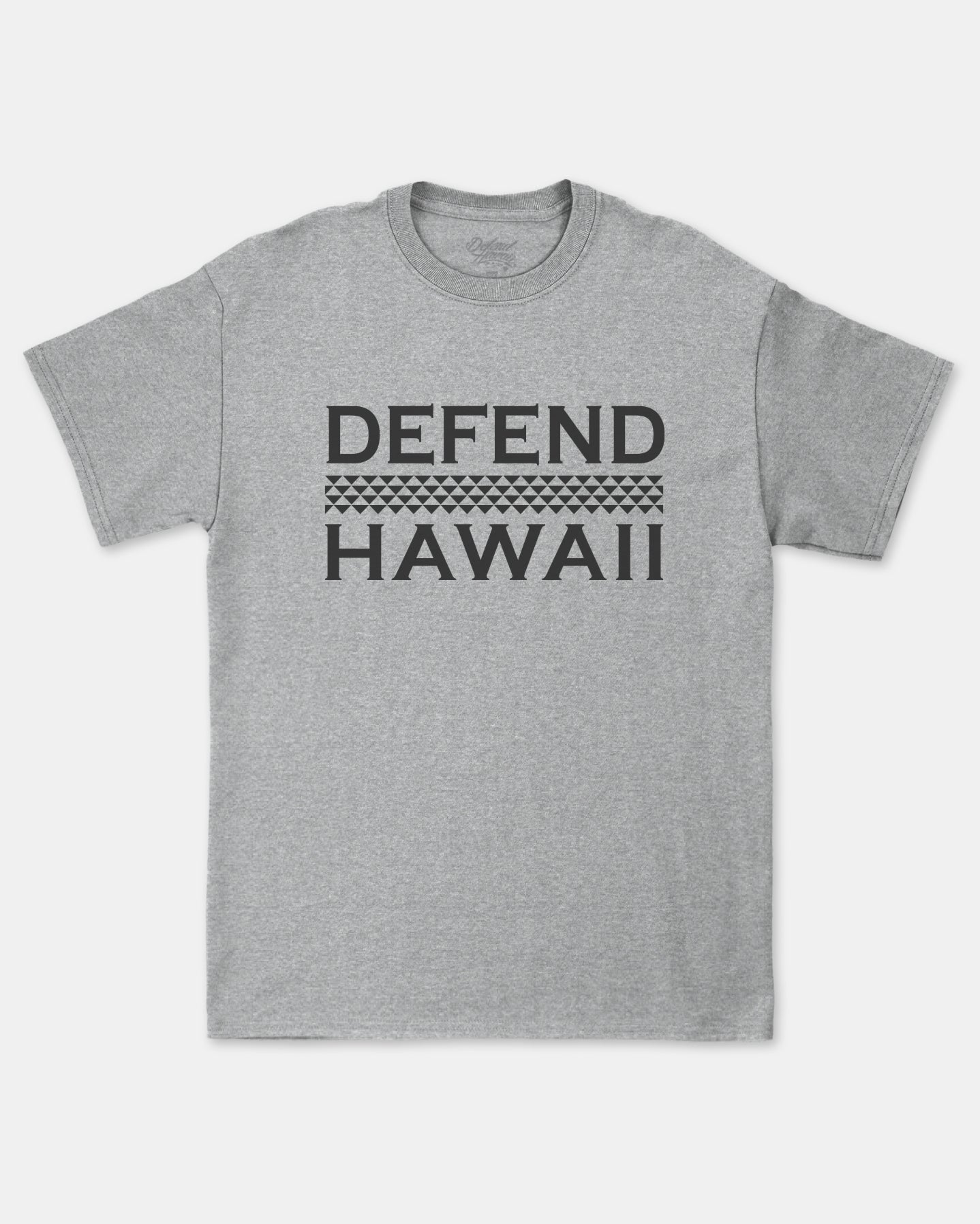 Defend Hawai'i - The classic look is back centered with a triangle block. This is, DH Trilocks. Featuring a center chest hit and a flag shield upper back hit. Pick your favorite colorway, this one comes in green on black OR black on athletic heather or military green casual fit t-shirt. Your everyday tee to DEFEND with.