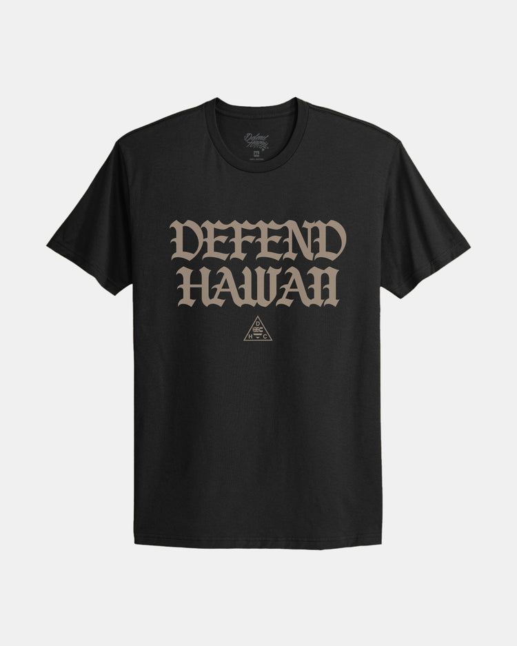 Defend Hawai'i - An homage to the historical Night March stories. Featuring a logo center hit and fire back hit. Pick your favorite color way. This one comes in gray and red ink on a black premium fit tee.