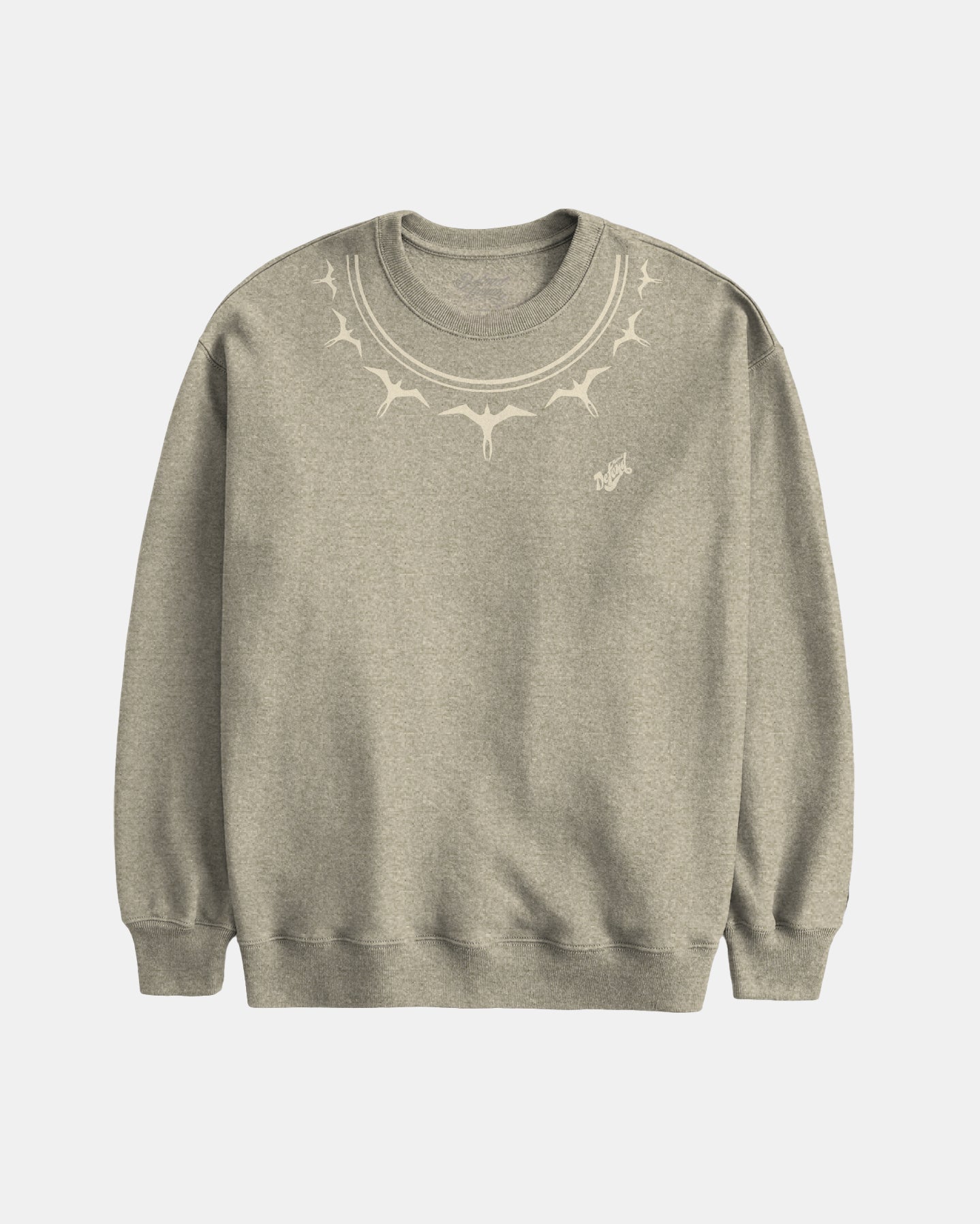 Defend Hawai'i - Wear your lei all day with our Sunflock Lei design, it always stays fresh. This one comes with freshly picked cream ink printed on a tan crewneck sweater. Your everyday tee to DEFEND with.