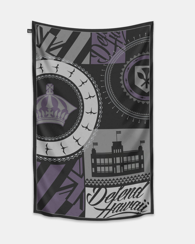 Defend Hawai'i- Our newest Roots Collage '25 lightweight pareo. This one comes in gray and purple. Perfect for daily or weekly dose of the beach. Hawai'i das why! Wrap it or wear it, these pareos define comfort.