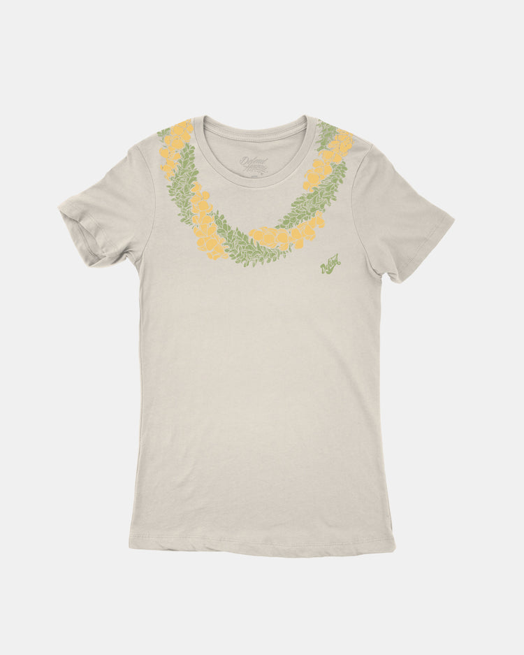 Defend Hawai'i - Wear your lei all day with our Twisted Lei design, it always stays fresh. This one comes with freshly picked yellow and green ink printed on a vintage brown or natural tee. Your everyday tee to DEFEND with.
