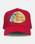 Defend Hawai'i  - This Ahi Poke Shops a-frame five-panel trucker. Clearly a take from one of the most popular hats this year, if you know you know. This one is a full cotton casual fit red trucker hat with a snap closure.